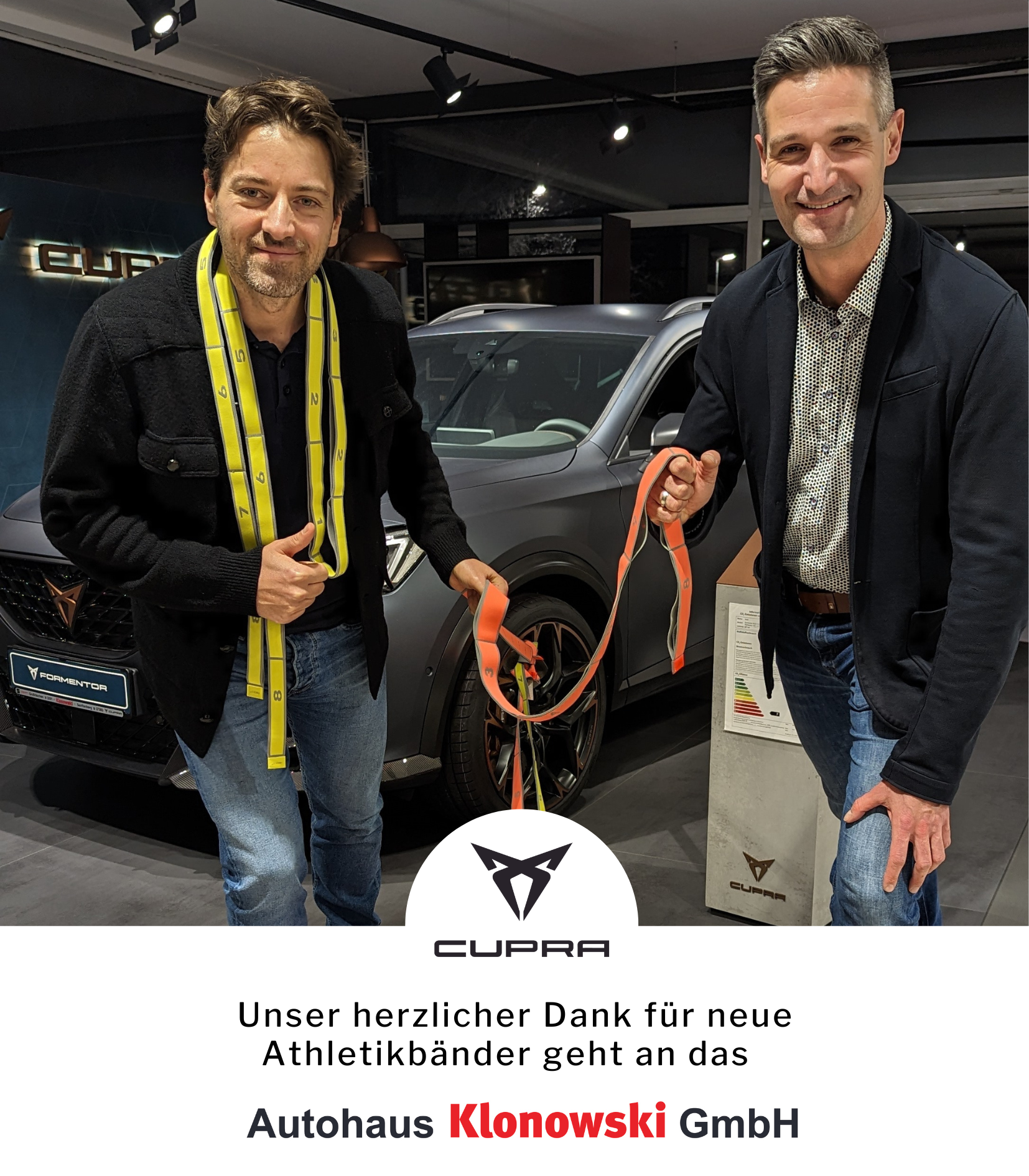 Wir freuen uns riesig über eine neue Spende. Diesmal hat uns das Autohaus Klonowski neue Athletikbänder gesponsert.